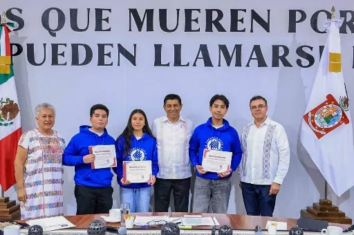 Oaxaca, Oax.- En el marco del Día Internacional de la Juventud, el Gobernador Salomón Jara Cruz entregó reconocimientos a seis estudiantes provenientes de distintas regiones del estado quienes, con mérito académico y acciones de impacto social, obtuvieron una beca en el Instituto Tecnológico y de Estudios Superiores de Monterrey.