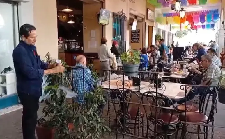 La manifestación se derivó, luego que el artista se inconformó que el restaurante cerrara el paso a los peatones sobre la banqueta, argumentando que es el paso peatonal.