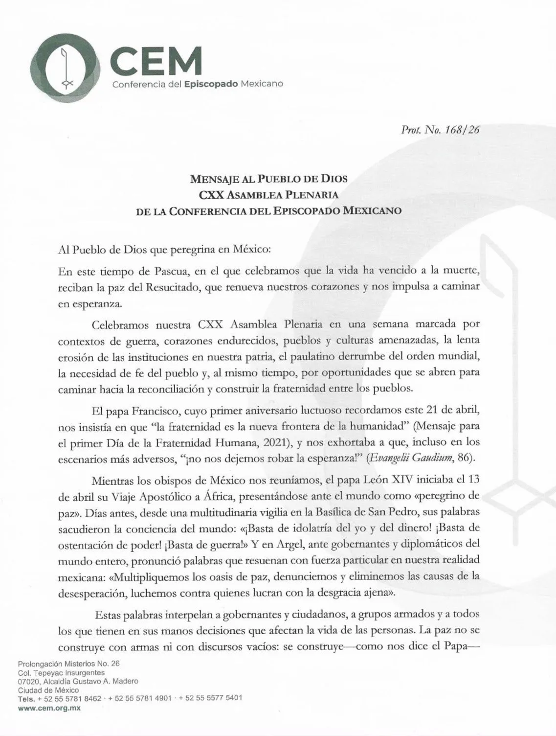 "La paz no se construye con armas ni con discursos vacíos": Obispos