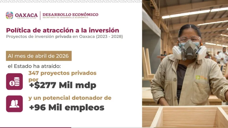 Durante la conferencia de prensa de este lunes encabezada por el Gobernador Salomón Jara Cruz, se informó que, al corte del mes de abril de 2026, la entidad atrajo 347 proyectos privados, lo que ha generado más de 96 mil empleos.