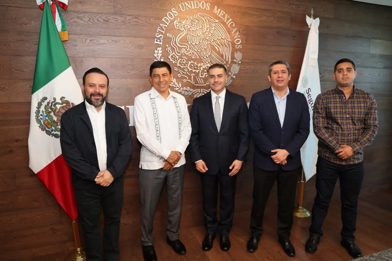 Oaxaca, Oax.- El gobernador de Oaxaca, Salomón Jara Cruz, encabezó este martes una reunión con el secretario de Seguridad y Protección Ciudadana del gobierno federal, Omar García Harfuch, en la que participaron el secretario de Gobierno estatal, Jesús Romero López; el fiscal general del estado, Bernardo Rodríguez Alamilla, y el director del Centro de Control, Comando, Comunicación, Coordinación e Inteligencia (C5i) de Oaxaca, Jaime González Estudillo.